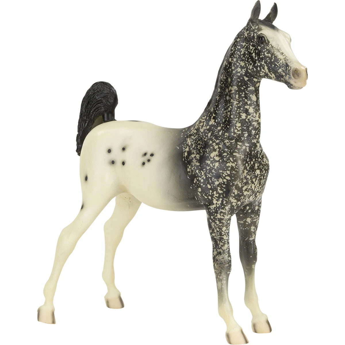 What can I say - star dapple gray looks great on Brishen! This is one of those models I wish I could find for sale now, though he'd probably cost a lot more than the mere $1,000 he sold for originally. Those were the days...when auction models were much less expensive, but still too expensive for most people. That year's most expensive model went for "only" $4,400! Maybe someday those prices will go back down, eh? I hope so. 2014 was a great year for auction models - not just this guy, but the rainbow cheetah Smarty, the heartbreakingly beautiful palomino Totilas, the Appaloosa Performance Horse Esprit, the to-die-for pearly dapple gray PAM, and many more were all up for grabs that year. I think this particular model got a little bit overshadowed by the others, honestly.